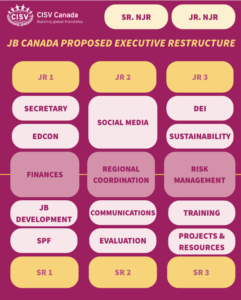 All positions are elected at CISV Canada's National Junior Branch Meeting. The JB Exec sits for two years at a time. First as a junior before they go into their second and final year as senior. In this way they overlap each other and get the training and experience needed for leading a JB.
